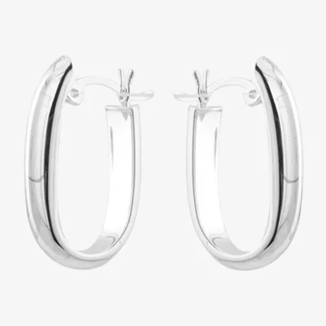 Silver Treasures Womens Sterling Silver 23mm Oval Hoop Earrings
