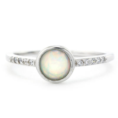 Silver Treasures Womens White Simulated Pearl Sterling Round Band