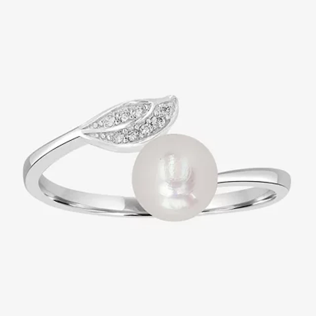 Silver Treasures Womens White Simulated Pearl Sterling Round Bypass Band