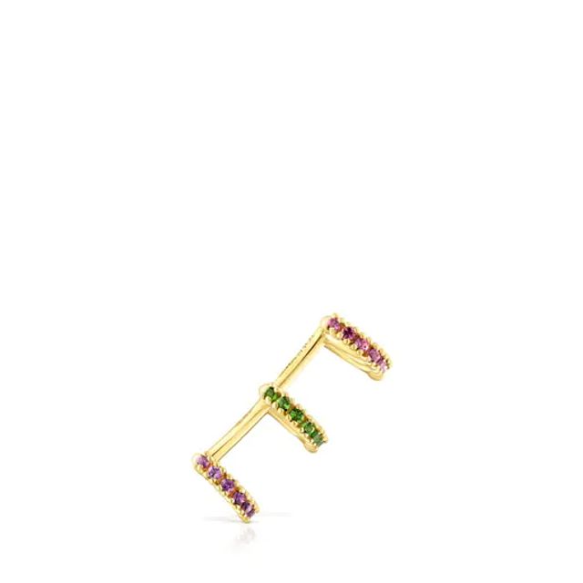 Silver vermeil TOUS Straight Triple earcuff with rhodolites, chrome diopside and gemstones