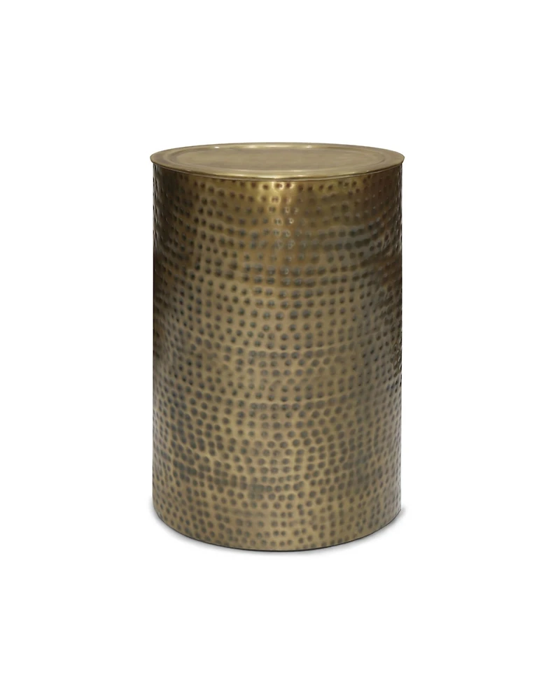 The Corbin Metal Side Table combines functionality and style, featuring a durable iron metal frame with a hammered texture and a radiant antique gold finish. Its versatile round drum design makes it a perfect fit for the living room, family room, entryway, or den, offering a stylish surface for decorative accents, beverages or lamps. Compact and sturdy, it seamlessly complements modern and transitional interiors.
