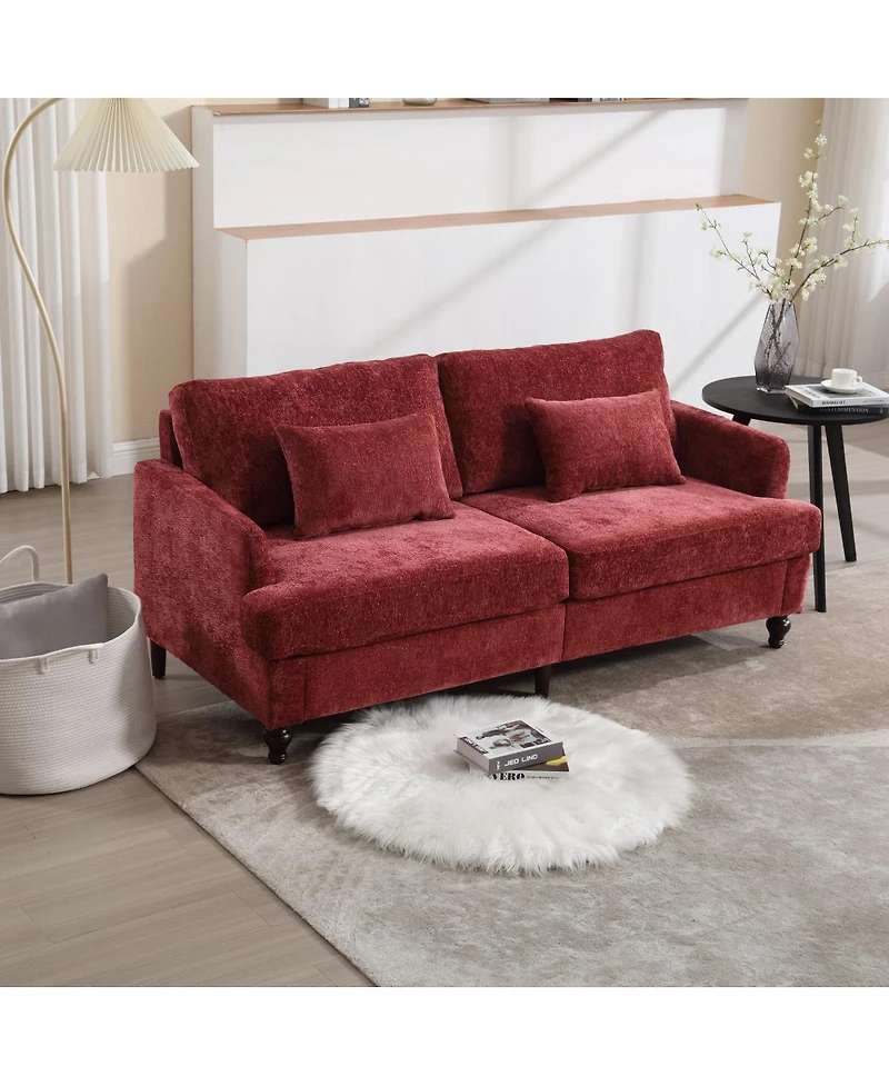Loveseat sofa in chenille fabric, solid wood frame, easy to assemble, suitable for various rooms, and comes with detachable cushions.