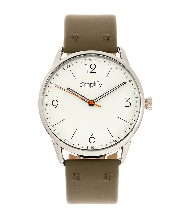 Simplify Quartz The 6300 White Dial, Genuine Olive Leather Watch 41mm