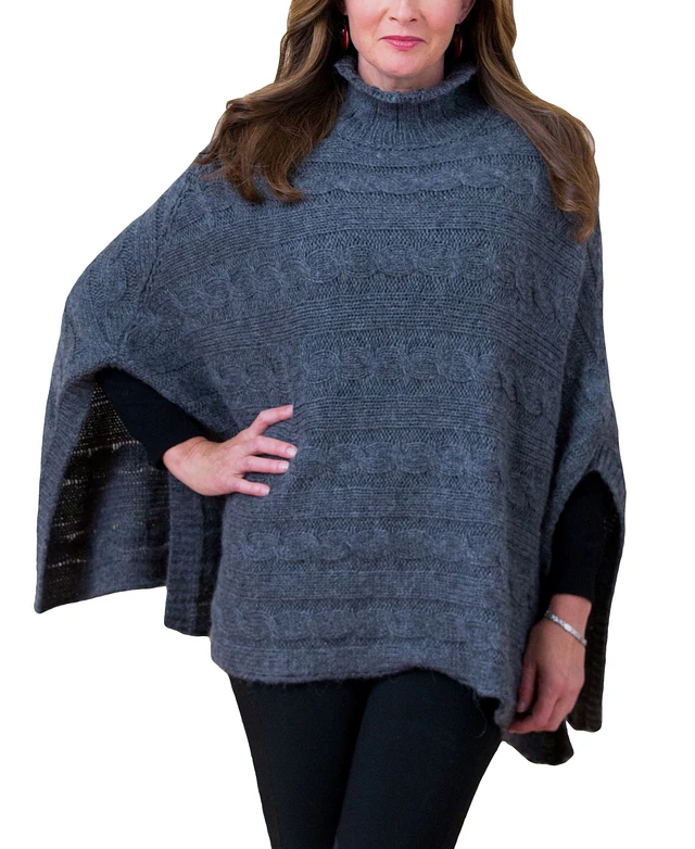 Simply Nattural Women's Lucia Alpaca Cable Knit Poncho