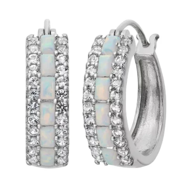 Simulated Opal & Lab-Created White Sapphire Sterling Silver Earrings