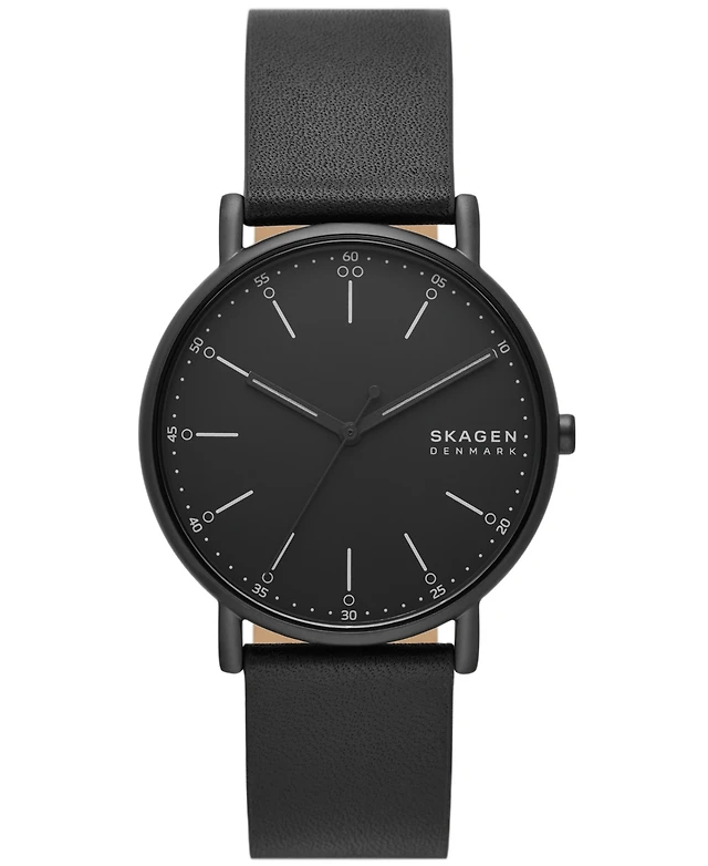 Skagen Men's Signatur Three Hand Black Leather Watch 40mm