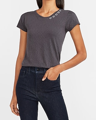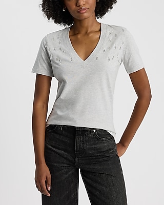 Skimming Embellished V-Neck Short Sleeve Tee