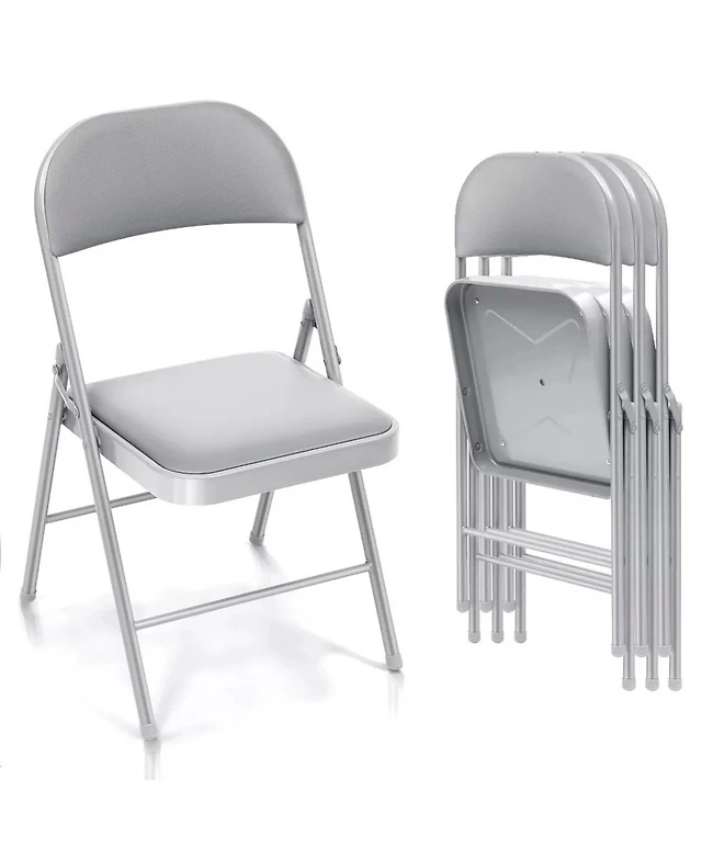 Meco Sudden Comfort Deluxe Metal Fabric Padded Folding Chair Set, Gray (4 Pack)