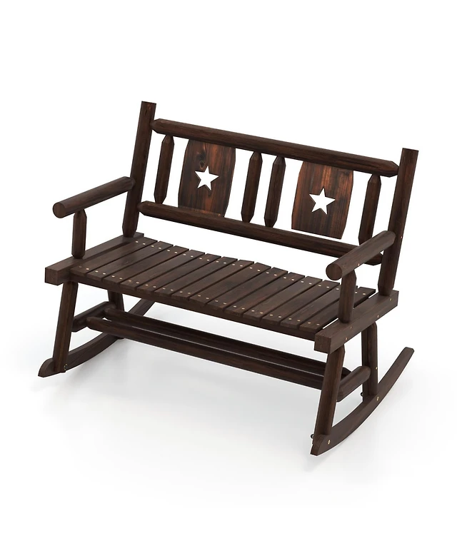 Patio Glider Loveseat Chair Swing Rocking Bench with Slatted Seat & Curved Backrest