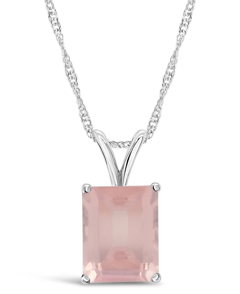 As enchanting and sophisticated as its namesake, this gorgeous emerald-cut pendant shimmers on a gleaming 18"" sterling silver Singapore chain. Available in Sky Blue Topaz and Rose Quartz