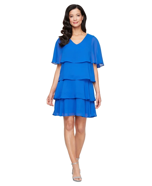 Sl Fashions Women's Chiffon Cape-Overlay Tiered Dress