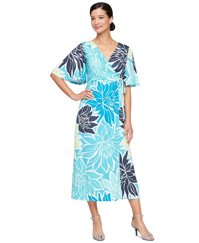Sl Fashions Women's Printed Faux-Wrap Short-Sleeve Dress