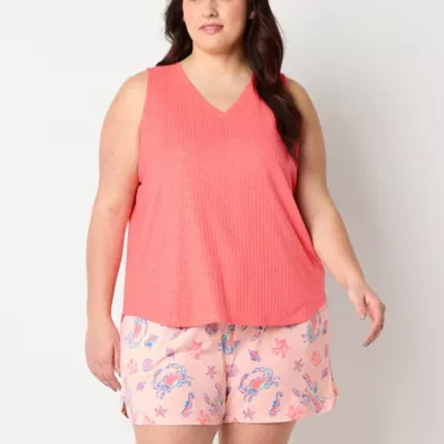 Sleep Chic Womens Rib V Neck Sleeveless Plus Pajama Top