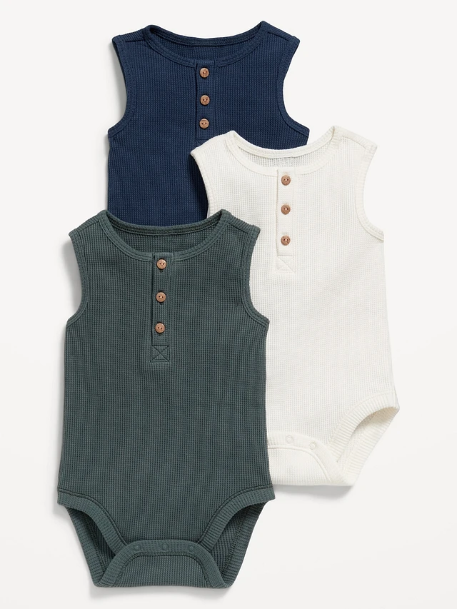 Sleeveless Waffle-Knit Henley Bodysuit for Baby
