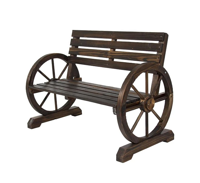 Slickblue 2 Person Farmhouse Wagon Wheel Wooden Bench