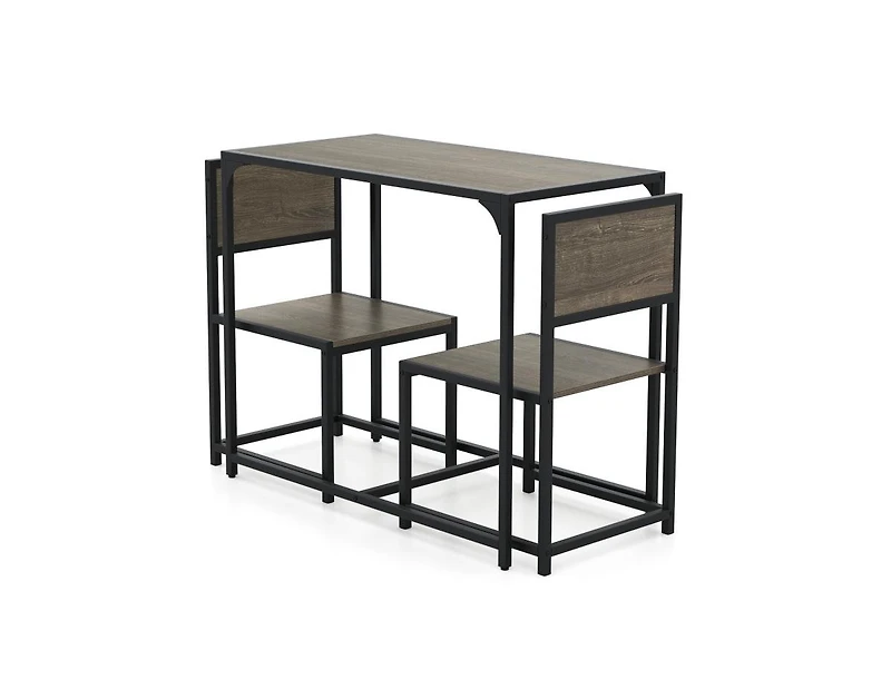Maximize your dining area with this 3 Pieces Dining Set featuring a compact table and two matching chairs designed for small spaces. The streamlined table offers a practical surface for everyday meals, while the chairs provide comfortable seating with a supportive metal frame. Built for durability and stability, the metal construction helps ensure long-term use. Ideal for apartments, kitchens, or breakfast nooks, this space-saving dining set delivers a functional solution for casual dining without overcrowding your room.