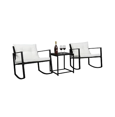 Gymax 3PCS Patio Rocking Chair & Table Set Outdoor Conversation Bistro Set