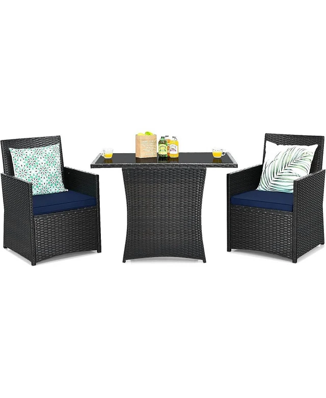 Slickblue 3-Piece Patio Dining Set with Pe Rattan and Cushions for Outdoor Living