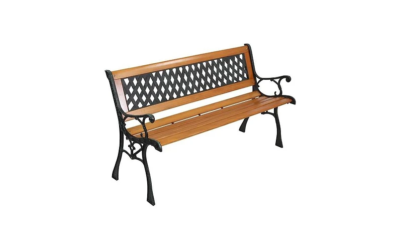 Slickblue 49" Garden Bench Love Seat with Rose Style Backrest – Hardwood and Cast Iron Patio Chair in Ponce, PR