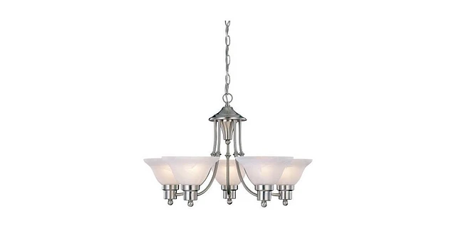 Slickblue 5-Light Brushed Nickel Chandelier with Frosted Glass Shades for Elegant Lighting