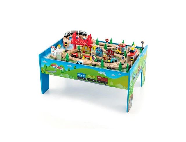 Hey Play 75-Piece Wooden Train Set with Play Table