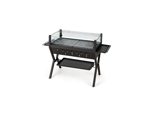 Stainless Steel Barbecue Charcoal Grills with Seasoning Racks & Storage Shelf