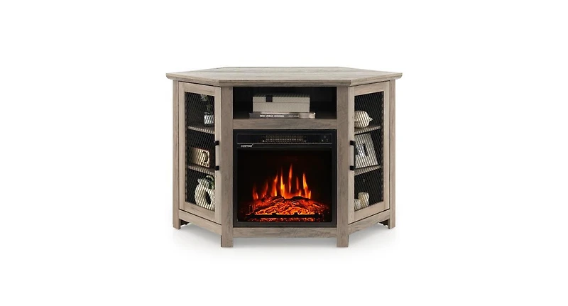 Slickblue Corner Tv Stand with 18 Inch Electric Fireplace for TVs up to 50 Inch