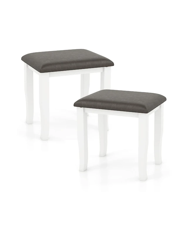 Slickblue Faux Leather Vanity Stool Chair Set of 2 for Makeup Room and Living Room-Grey and White