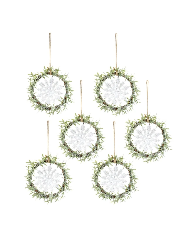 Slickblue Frosted Winter Mini Leaf Wreath With Snowflake Ornament (Set of 6)