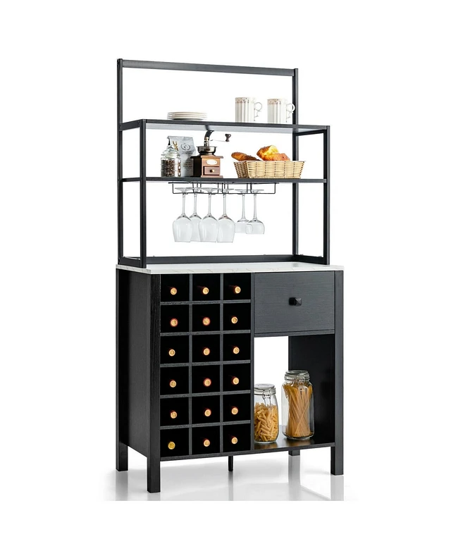 Slickblue Kitchen Bakers Rack Freestanding Wine Table with Glass Holder and Drawer