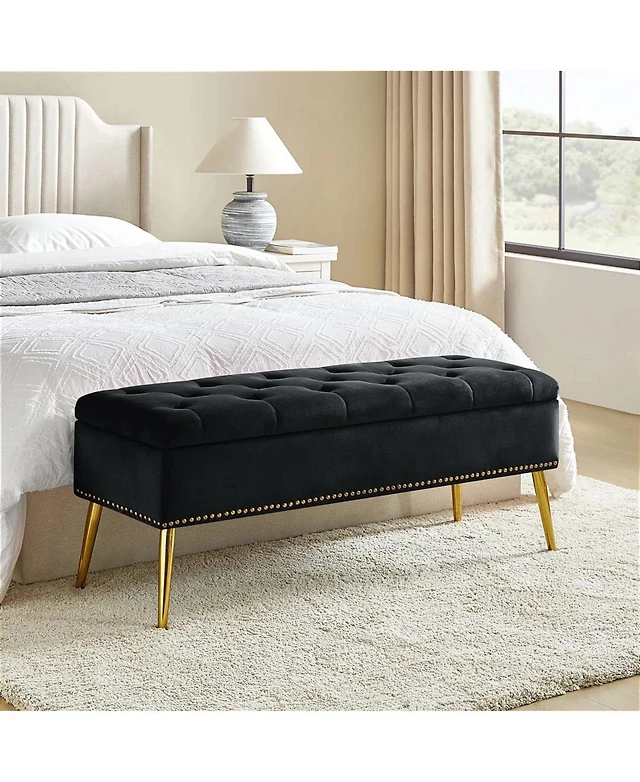 gaomon 47.7'' Mid-century Modern Upholstered Storage Bench with Solid Wood Legs