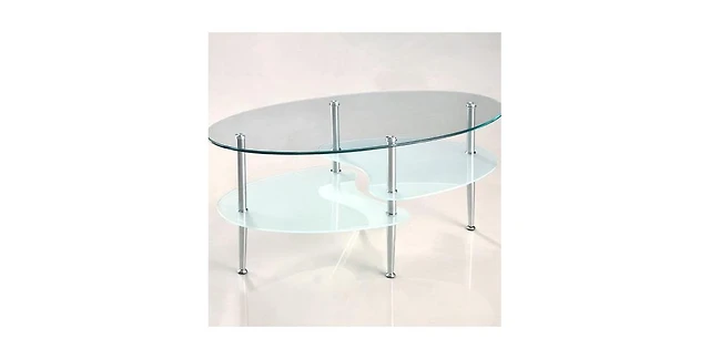 Slickblue Modern Oval Glass Coffee Table with Chrome Metal Legs