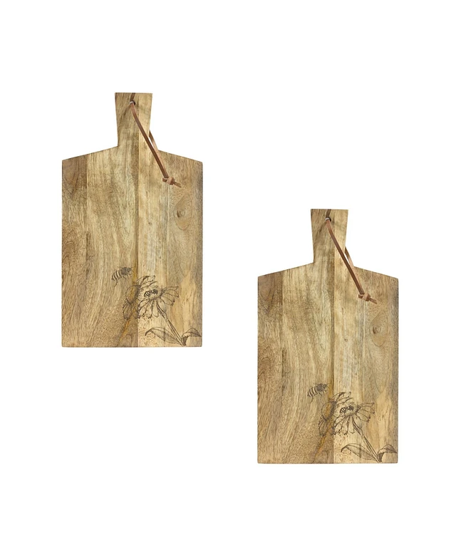 Slickblue Natural Mango Wood Cutting Board With Etched Floral And Bee Design (Set of 2)