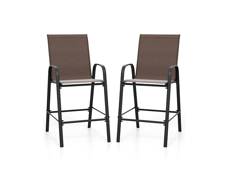Upgrade your outdoor bar or counter seating with this set of two 29-inch bar height stools designed for comfort and durability. Featuring breathable fabric seats and supportive armrests, these stools provide relaxed seating for extended gatherings or casual dining. The bar-height design pairs perfectly with high-top tables and outdoor counters, making them ideal for patios, decks, or poolside areas. Built with sturdy, outdoor-ready materials, this bar stool set combines comfort, stability, and modern style for a functional and inviting outdoor setup.