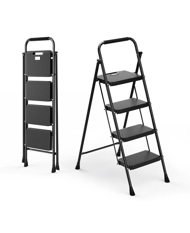 Slickblue Portable Folding 4 Step Ladder Stool for Adults with Wide Anti-Slip Pedal-Black