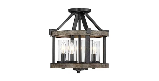 Slickblue Round 4-Light Metal Wood Farmhouse Ceiling Lamp - Semi-Flush Mount