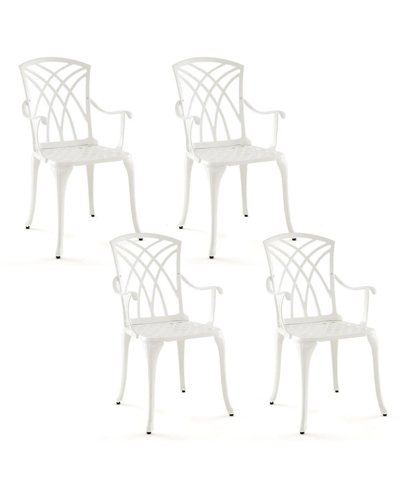 Slickblue Set of 4 Cast Aluminum Patio Dining Chairs with Armrests and Decorative Patterns