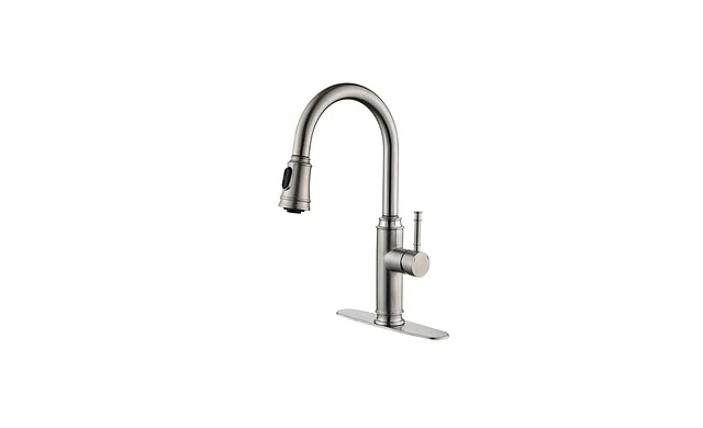 Greenspring Single Handle Pull-Down Sprayer 1 Spray High Arc Kitchen Faucet With Deck Plate Brushed Nickel