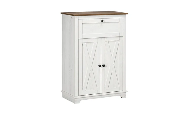 Farmhouse Coffee Bar Cabinet, 33" Buffet Sideboard with Sliding Barn Door and Adjustable Shelf, Kitchen Buffet Cabinet, White