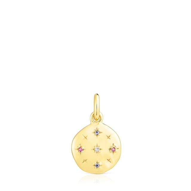 Small silver vermeil Magic Nature disc Pendant with gemstones