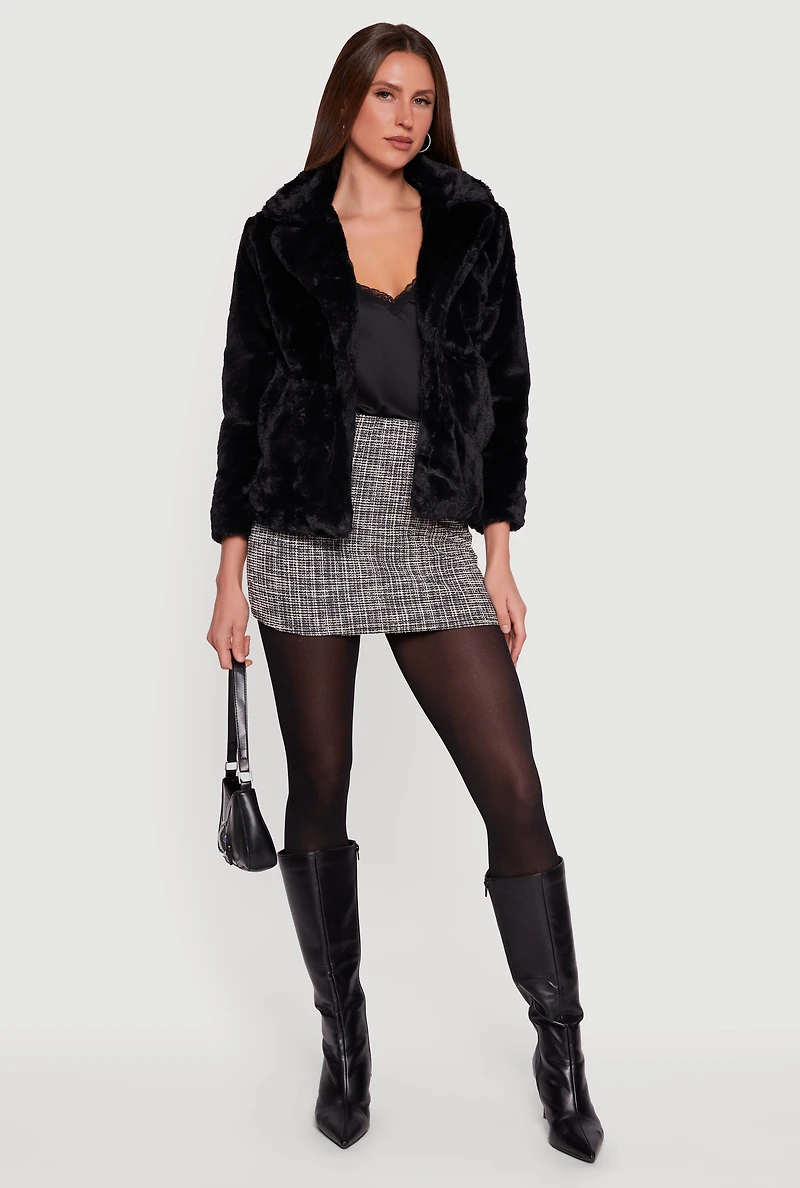 Snap Button Front Faux Fur Coat