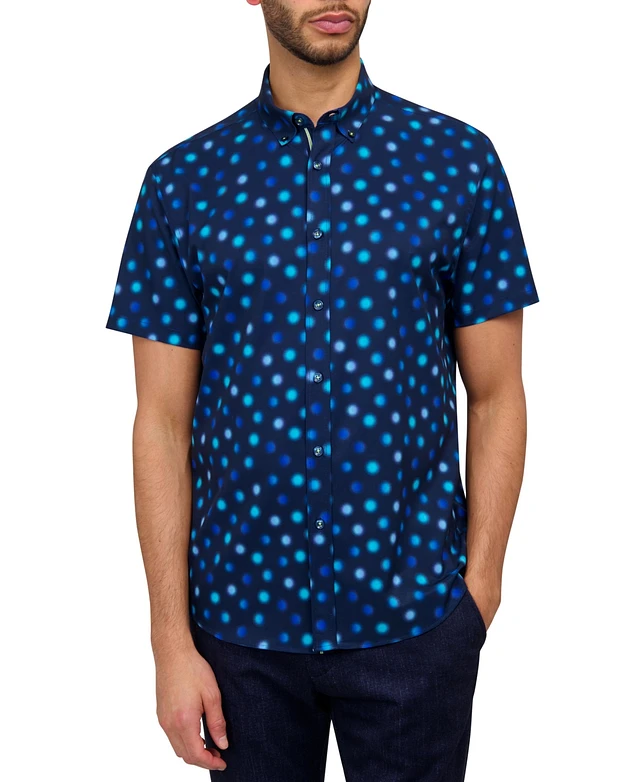 Society of Threads Men's Regular-Fit Non-Iron Dot Print Performance Stretch Dress Shirt