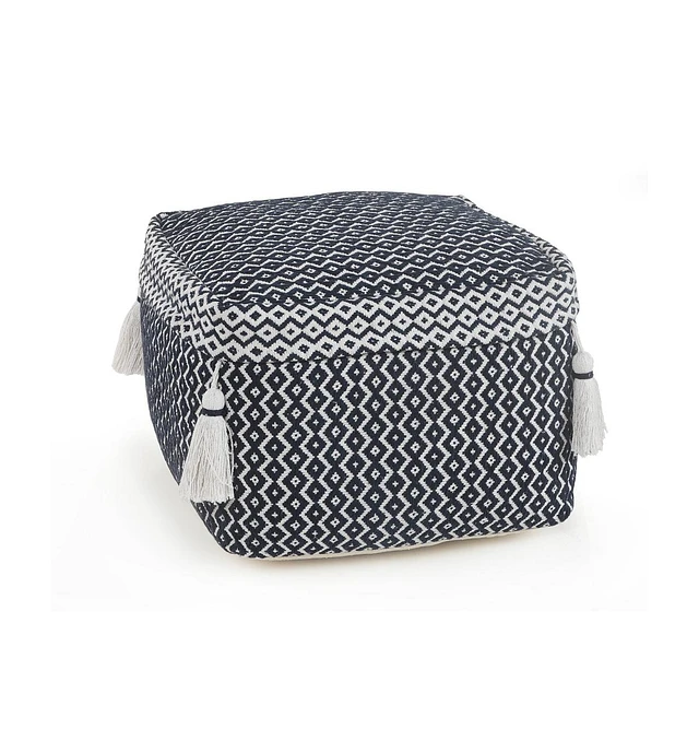 Geometric Cotton Pouf – Square Ottoman for Living Room Seating or Boho Style Accent