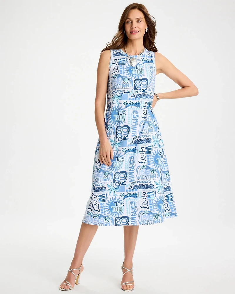 The perfect vacation dress (or for feeling like you’re on one). Made with a soft-stretch slub cotton slub fabric featuring an empire waist hem and showstopping print that includes messages to inspire visions of Italy.