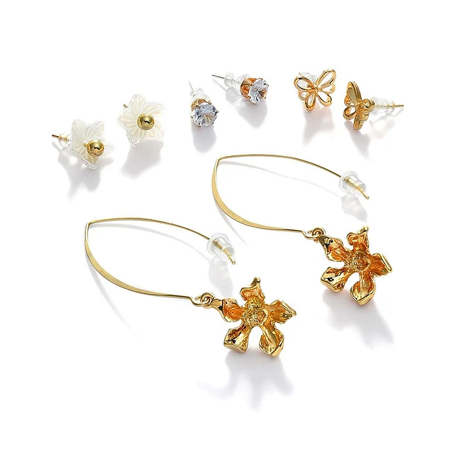 Sohi Women's Gold Metallic Flora Drop Earrings