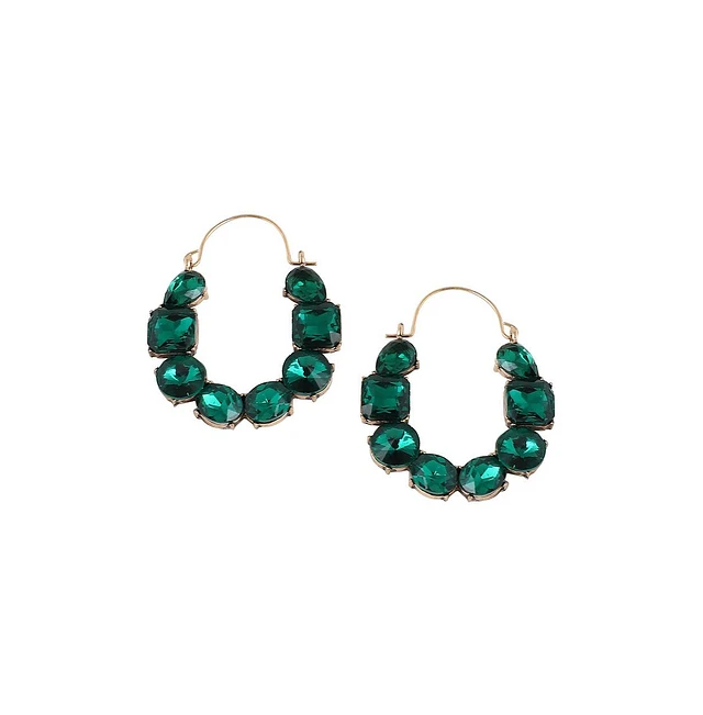 Sohi Women's Green Embellished Hoop Earrings