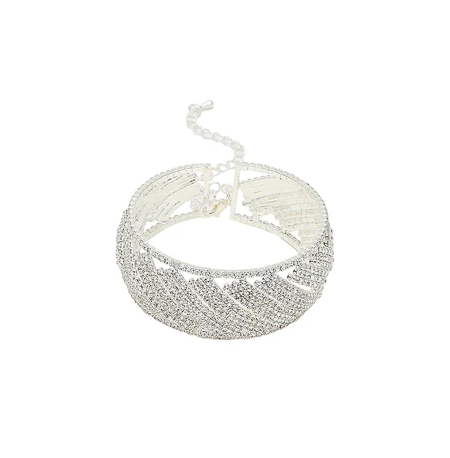 Sohi Women's Silver Embellished Cluster Finger Ring