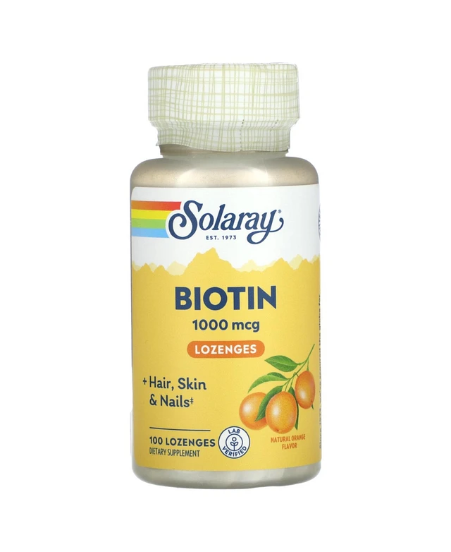 Solaray High Potency Biotin 1000 mcg | Natural Orange Juice Flavor | Healthy Hair, Skin &
