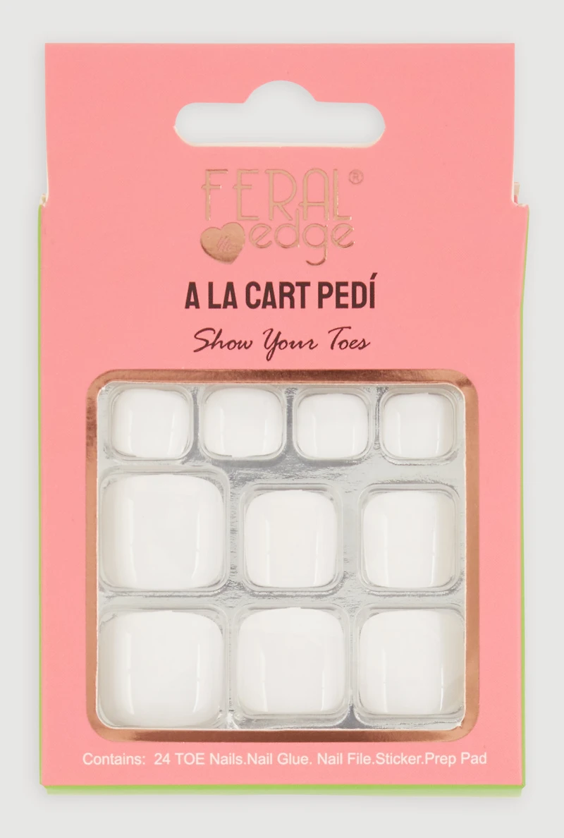 Includes: 24 Nails, Nail Glue, Nail File, Pedicure Stick, Prep Pad