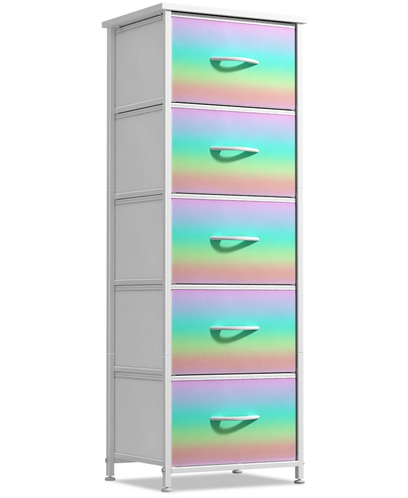 If you're lacking storage in your bedroom, entryway, or home office, this slender storage tower is the solution. The Sorbus Tall Fabric Storage Dresser is perfect for dorm life and home life. Due to its skinny design, it will effortlessly fit in any space while providing optimal storage solutions. Use this next to your bed as a Dresser or beside your desk as an office organizer. No matter how you choose to use this fabric dresser, it will make your day to day more routine. Getting organized has never looked better.